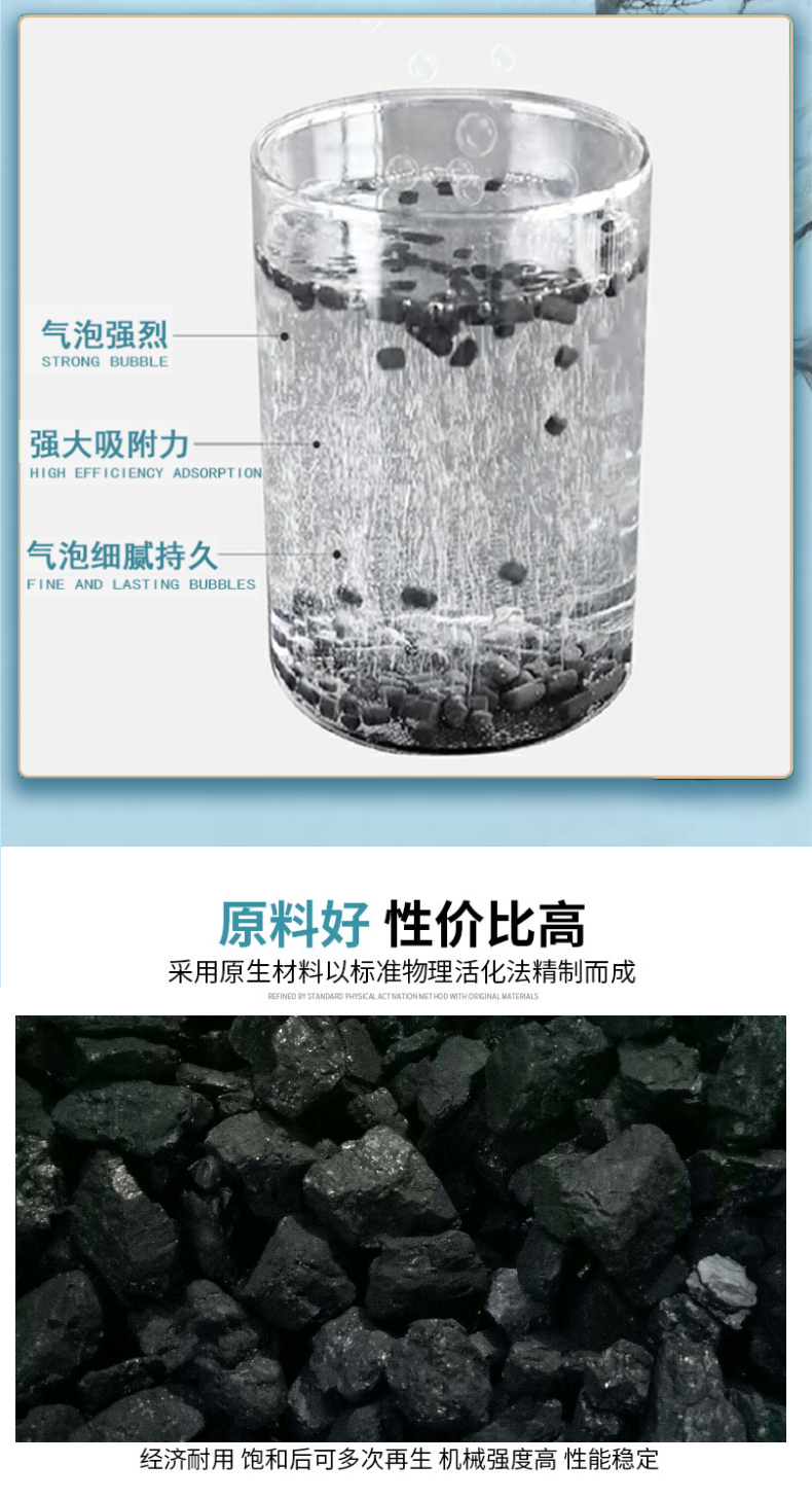 四、顆粒炭和粉狀炭作用相同,但顆粒炭不易流失所以容易再生重復(fù)使用,相對粉狀活性炭來說顆粒炭更適合用于污染較輕、需連續(xù)運行的水處理工藝,但是粉狀炭目前不易回收所以一般為一次性使用,相對于顆?;钚蕴克m用于間歇地污染較重的水處理工藝。
