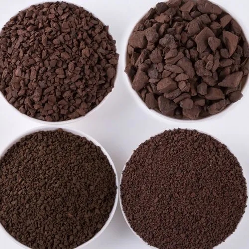 采用天然錳礦石經(jīng)機械破碎、水洗、多次篩分加工而成。外觀呈褐色,表面粗糙。錳砂密度大、硬度高、不易磨損與破碎、化學(xué)性能穩(wěn)定、不含有毒物質(zhì),是一種很強的氧化劑。