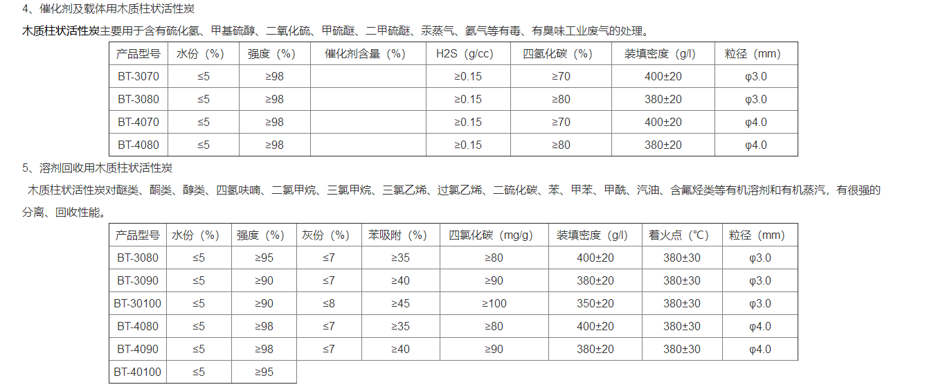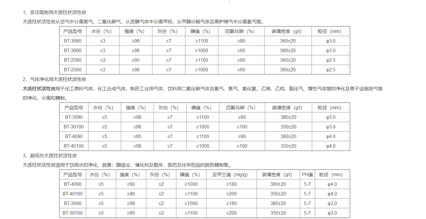 木質(zhì)活性炭主要分為:木質(zhì)柱狀活性炭、木質(zhì)顆?;钚蕴俊⒛举|(zhì)粉狀活性炭。