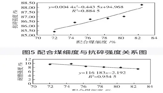 配合煤細(xì)度對配合煤堆密度、焦炭機(jī)械強(qiáng)度、熱強(qiáng)度及焦炭產(chǎn)量的影響, 用來指導(dǎo)實(shí)際生產(chǎn);在一定條件下, 按照實(shí)際使用的配比, 進(jìn)行不同細(xì)度下配合煤, 尋找配合煤細(xì)度與焦炭質(zhì)量、產(chǎn)量的對應(yīng)關(guān)系。