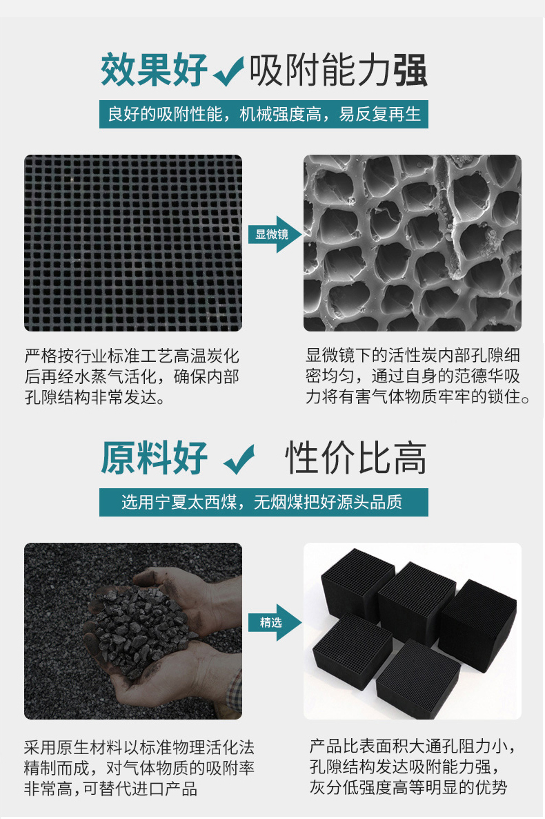 蜂窩活性炭的制造方法,由活性炭、有機聚合物粘合劑和有機潤滑劑組成的復合材料有效地制造成蜂窩活性炭,蜂窩活性炭的整體的加工性與其尺寸之間的關(guān)系巧妙。例子包括洗滌系統(tǒng)或者活性炭濾器 這種拆卸技術(shù)可以分為吸附,分解,掩蔽或生物濾池,取決于方法。有兩種類型的吸附;物理吸附,使用有機化學物質(zhì)活性炭或活性炭纖維或無機化學品等作為沸石、 和化學吸附,使用化學處理活性炭或離子交換劑?;钚蕴?,長期作為代表吸附劑,已廣泛應(yīng)用于工業(yè),醫(yī)療或環(huán)境目的。因此,活性炭已經(jīng)根據(jù)其特定的表面積和多樣性開發(fā)孔結(jié)構(gòu)和尺寸通過改變一些相關(guān)聯(lián)物理化學特性,包括生物的類型材料和激活程序?;钚蕴恐饕诸悶榉蹱罨钚蕴亢皖w粒狀活性炭,炭化或活化的材料一般是煤或木質(zhì)材料。 蜂窩狀活性炭是一種新型環(huán)?;钚蕴繌U氣凈化產(chǎn)品,能有效降低異味和污染物,達到廢氣一級排放標準。