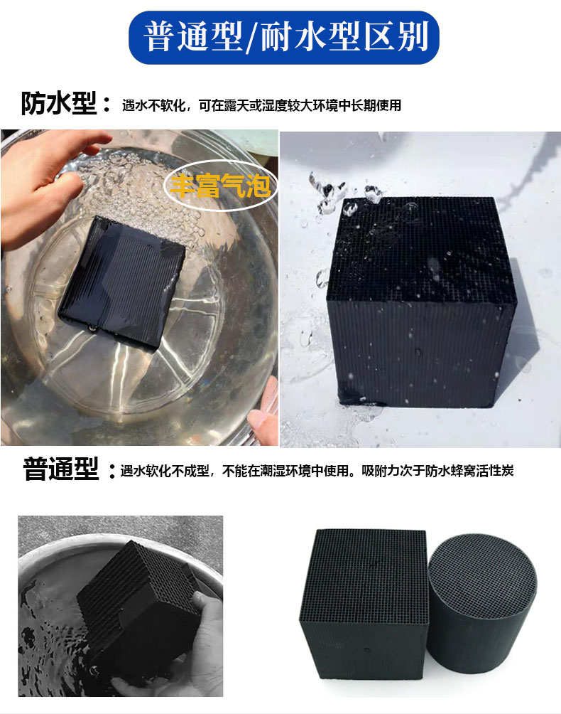 1、產(chǎn)品規(guī)格:主要表示蜂窩活性炭的形狀大小,常見的有100*100*100mm / 100*100*50mm。